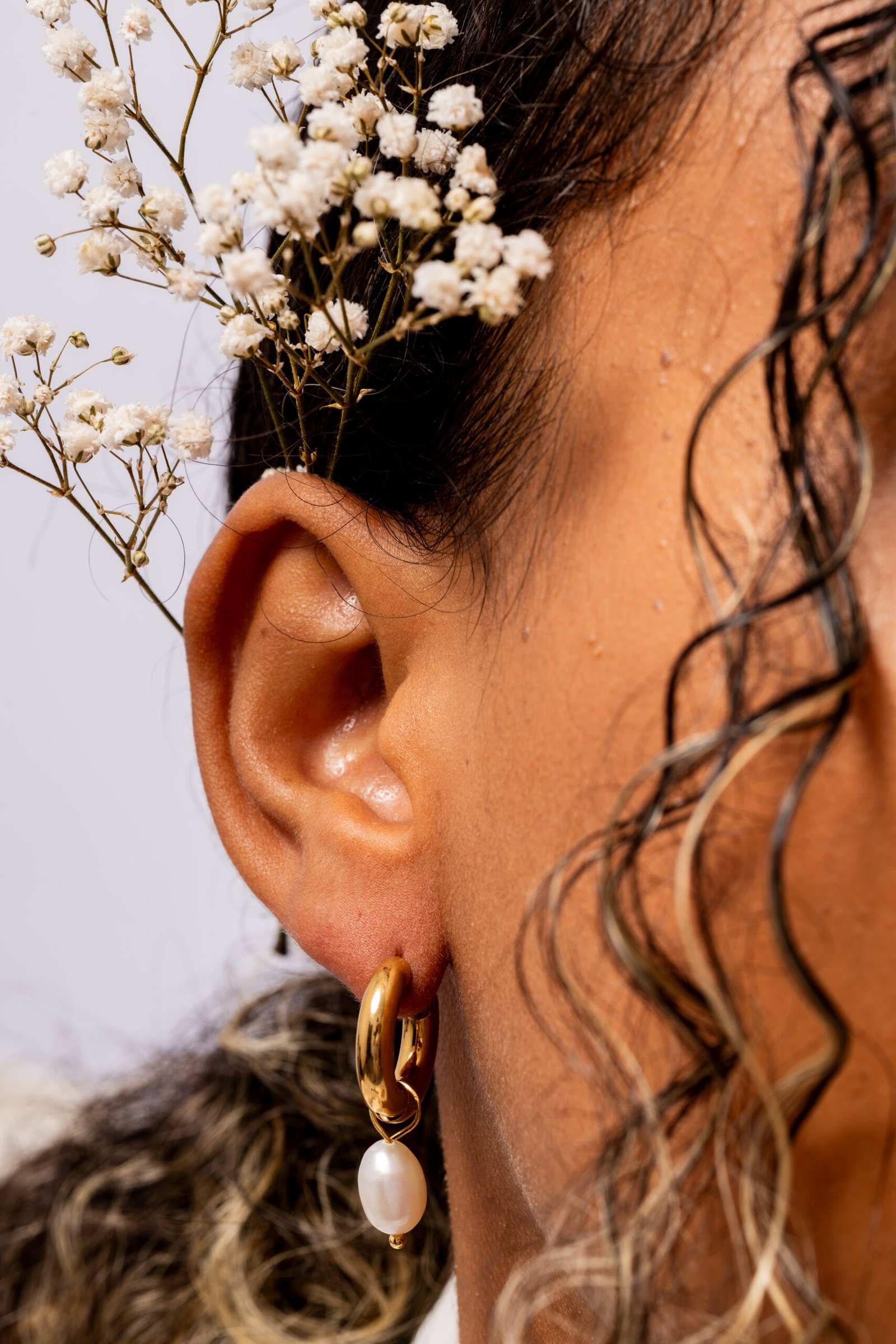 The Ariel Earrings are elegant gold hoops featuring unique natural freshwater pearls, symbolizing purity and femininity. With a secure closure and versatile design, they offer sophisticated style for everyday wear or special occasions, making them a perfect gift.