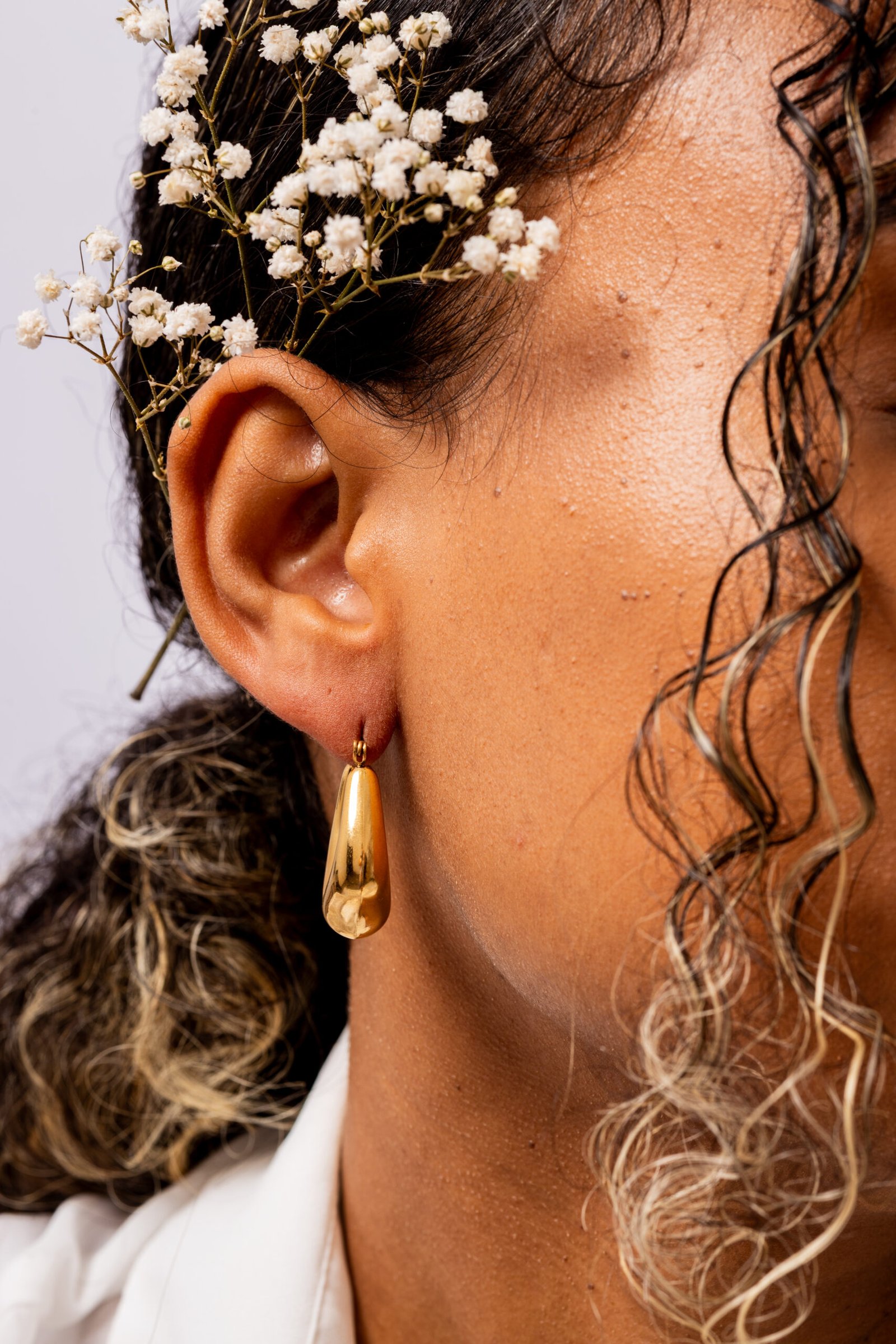 Introducing Eleanor, the modern hoop that redefines statement accessories. With a sculptural, curvy design, Eleanor brings a fluid and contemporary aesthetic that stands out in any look. Its bold, chunky structure combines elegance and daring, making it the perfect complement for creative or minimalist styles. The polished, mirrored metallic gold finish gives a sophisticated touch, while the click closure with articulated pin ensures security and comfort. With its water resistance, Eleanor is made of stainless steel, 18k PVD gold plated, and hypoallergenic, ensuring lasting color and comfort. If you’re looking for a gold earring that elevates your style and serves as a true focal point in your looks, Eleanor is the ideal choice. Invest in an accessory that combines modernity and versatility and make a unique style statement.