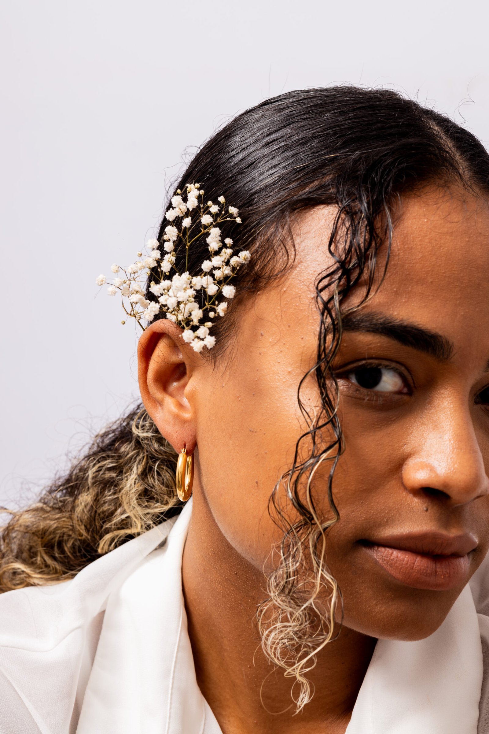 Presenting the Grace earring, a small, rounded hoop that brings elegance and versatility in a clean design. With medium thickness and a smooth, shiny finish, its modern gentle curve is ideal for those seeking a touch of discreet, timeless sophistication. Grace is perfect for everyday wear, complementing everything from casual looks to more formal outfits with charm and subtlety. It also stands out in multiple piercing combinations, allowing for unique, personalized styles. Made from stainless steel and 18k PVD gold plated, this earring is hypoallergenic and water-resistant, guaranteeing durability and maintaining its color and quality over time. The pin and clutch closure ensures security and comfort. Add a touch of elegance to your everyday style with the Grace earring and discover the beauty of minimalism in gold accessories.