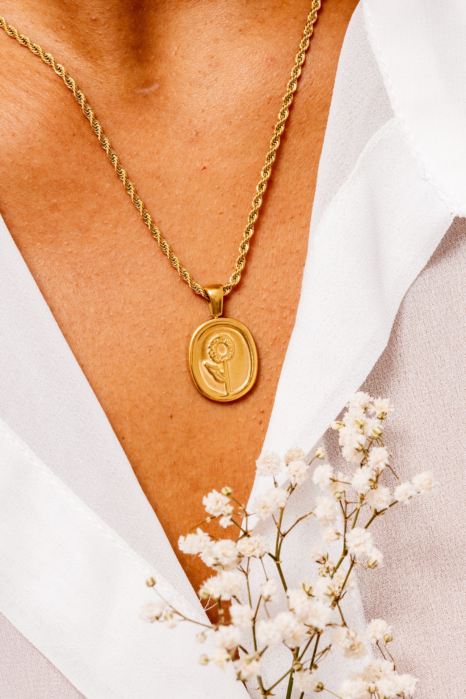 18k Gold-Plated Flower Medallion Necklace – Delicate, Hypoallergenic Jewellery with Elegant Detail